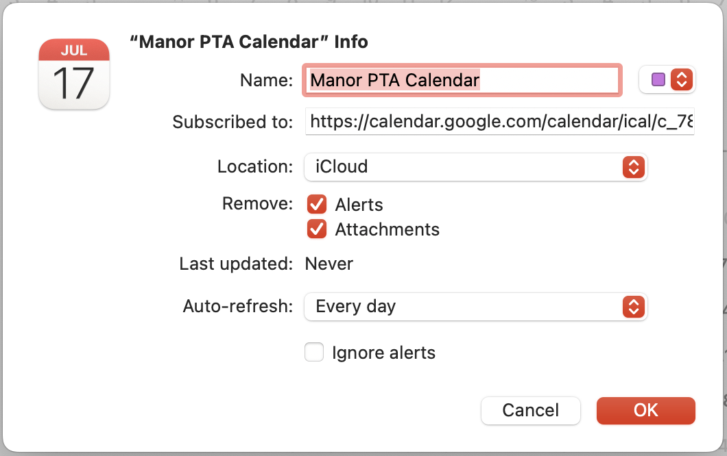 Here are 2 ways to subscribe to the Manor PTA calendar so that you will automatically get event updates when we make them.